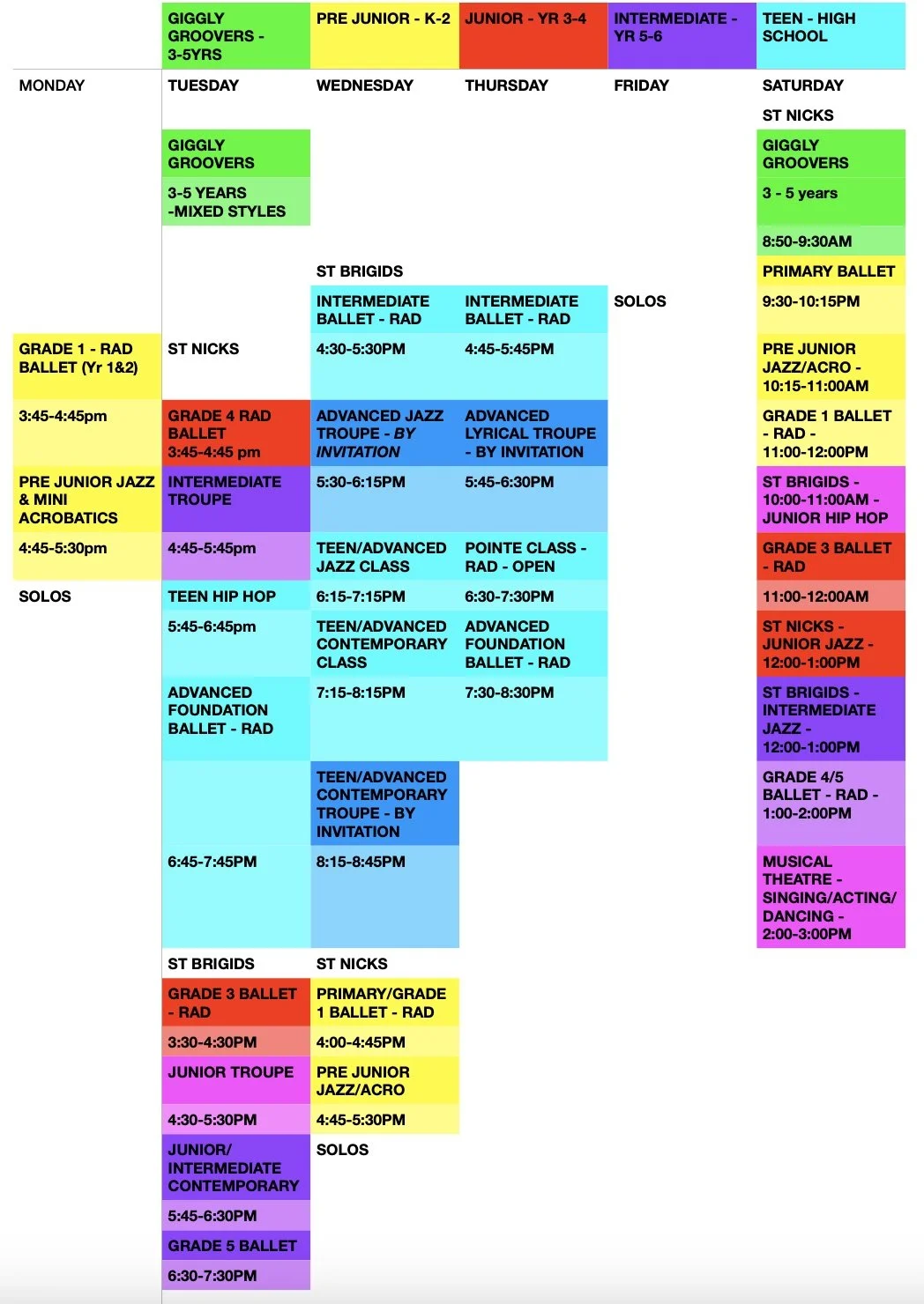 COOGEE TIMETABLe 2026